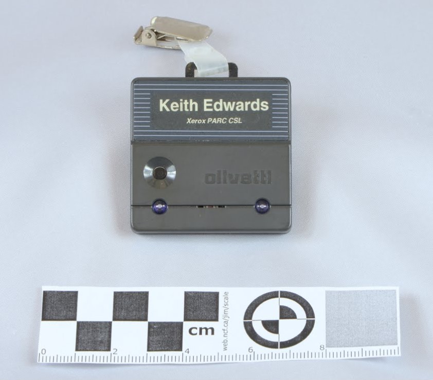 Το Active Badge που υλοποιήθηκε από το ερευνητικό εργαστήριο Olivetti το 1990 είναι από τα πρώτα συστήματα εντοπισμού θέσης σε εσωτερικό χώρο. Εκπέμπει υπέρυθρα σήματα τα οποία επιτρέπουν στους αποδέκτες των τοπικών υποδομών να εντοπίσουν το σημείο που βρίσκεται ο χρήστης εντός του κτιρίου. Αν και δε συνηθίζεται να θεωρείται “δίκτυο”, το σύστημα αυτό αποτελεί πρόδρομο πολλών παρόμοιων μεταγενέστερων συστημάτων εντοπισμού θέσης.